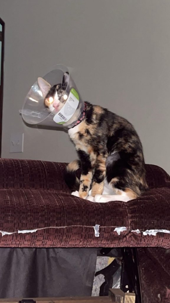 After your cat’s spay surgery, the cone plays a crucial role in her recovery. This simple device stops her from licking or biting the surgical site, which can cause infections or slow down healing.